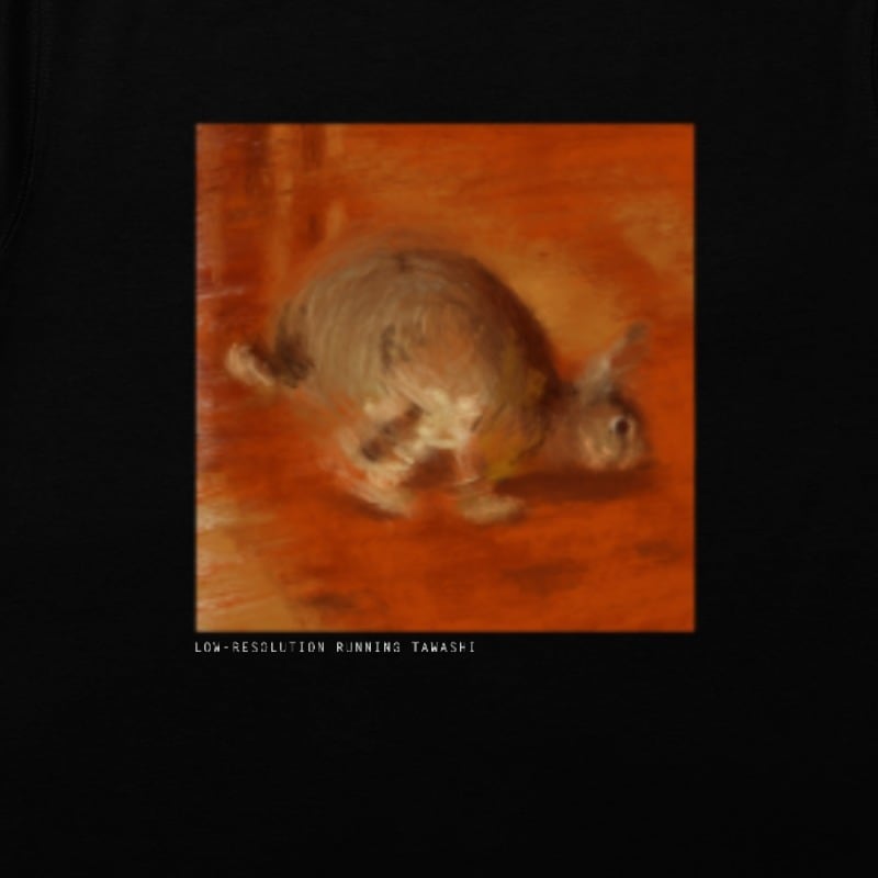 その姿を写したブレブレ写真をもとに描いた絵をTシャツにしました。